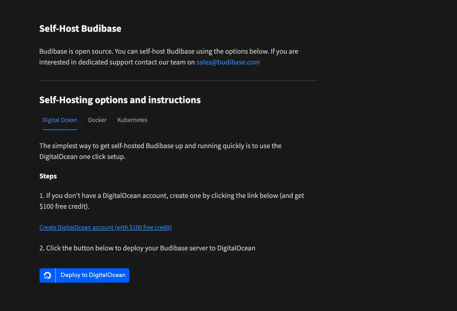Deploy your appsvia Kubernetes, Docker, Digital Ocean. Or choose the Budibase Cloud and let Budibase manage everything for you.
